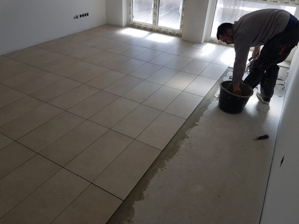 Fliesenverlegung im Prozess
