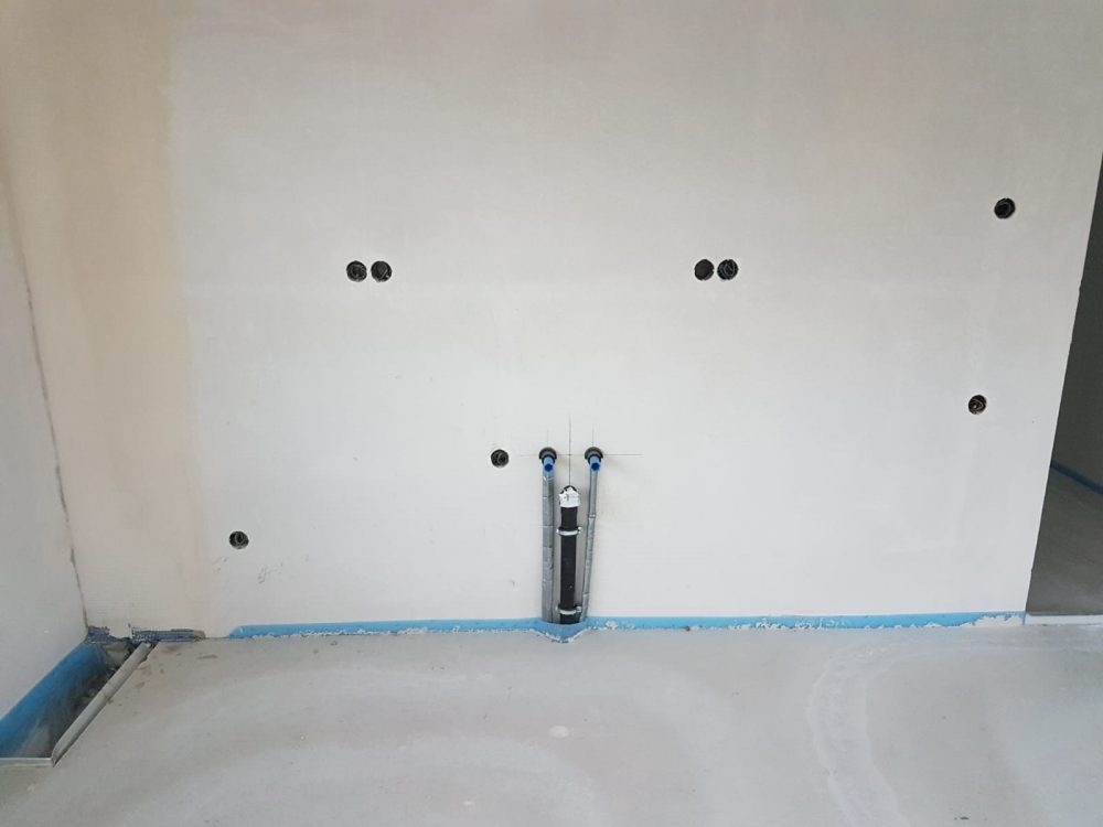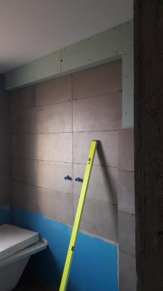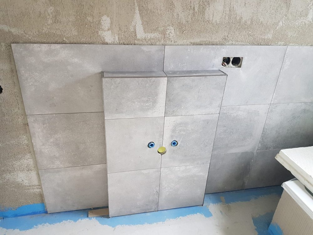 Fertigstellung der Vormauerung für das Waschbecken